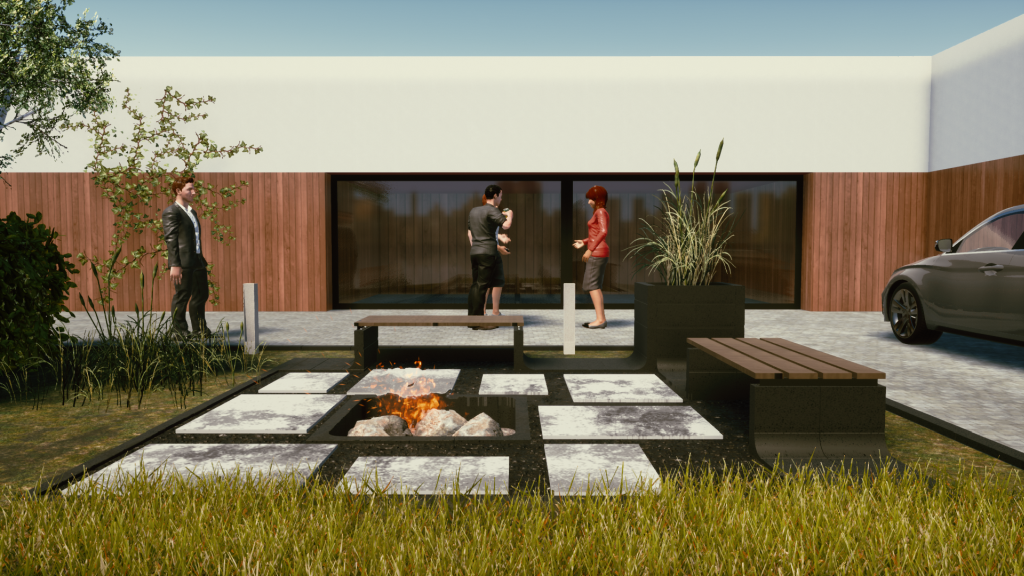 Meble powstałe dzięki nieoczywistym sposobom wykorzystania prefabrykatów betonowych można łączyć w spójne, wieloelementowe kompozycje. Dla przykładu po obydwu stronach betonowej sofy stworzonej z elementów Polbruk Neo można umieścić wykonane z tego samego prefabrykatu kwietniki i posadzić w nich ozdobną zieleń, tak potrzebną do prawdziwego relaksu. Aby zachować modernistyczny charakter aranżacji, a zarazem ukoić zmysły, do stworzonego już wcześniej „kompletu wypoczynkowego” można dołączyć oczko wodne, mini fontannę lub kaskadę ze zbiornikiem, do którego będzie spływała woda. Pozwoli to wprowadzić do otoczenia szum płynącej wody, który działa uspokajająco i skłania do relaksu. Obudowę zbiornika wodnego można bez trudu wykonać na przykład z prefabrykatów Polbruk Albero. Murek ten łączy klasyczny kamienny wygląd z nowoczesnym charakterem. Aby to zrobić, w przestrzeni pomiędzy ścianami wykonanymi z Albero należy umieścić zbiornik z pompą wodną, którą będzie tłoczyła wodę ku górze (musi być podłączona oczywiście do źródła zasilania). Innym ciekawym i możliwym do uzyskania efektem, jest woda tryskająca z kamieni. W tej wersji nad zbiornikiem mini fontanny umiejscawia się ruszt i po jego osadzeniu układa na nim kamienie, na przykład otoczaki. Interesującym rozwiązaniem aranżacyjnym jest również kaskada, do której idealnie nadaje się już wcześniej wspomniany Neo. Sposób wykonania i osadzenia niecki jest identyczny, z tym wyjątkiem, że jedna ze ścian musi być wyższa. To właśnie w niej ukrywa się rurę prowadzącą od pompy w niecce do wylewki zlokalizowanej w górnej części ściany. Spływająca po ścianie woda stworzy kaskadę. Miłośnicy grilla lub fani ognisk z pomocą prefabrykatów betonowych mogą wymurować także palenisko. Osadza się je nieco niżej powierzchni, tak aby górna krawędź zrównywała się z płaszczyzną nawierzchni. Takie miejsce pod ognisko można zbudować z kilku obrzeży Tigela ułożonych na boku i tworzących kwadrat. W przypadku budowy grilla konieczne jest natomiast wzniesienie wyższej, wyrastającej ponad ziemię konstrukcji, najlepiej z bloczków Neo lub Albero z pustą przestrzenią w środku (miejsce na opał) oraz rusztem umiejscowionym w górnej części.